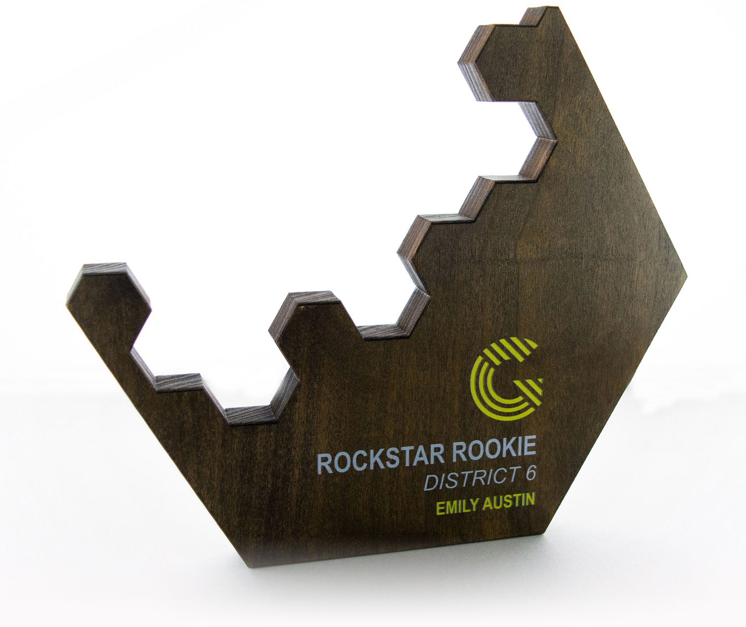 Puzzled about what material to use in your award? Fusion solves the problem by marrying highly sought after materials into once beautiful award. Select you shape, a wood tone for the bottom and color and graphics for the top creating your own designed that fits together just like a puzzle. It is fun and easy.